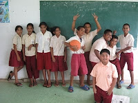 The most exciting slice of adventure has been our dear Parma. You know that we taught a whole week of school, but did you know that it was pouring that whole week? Well I'm telling you now. It was raining like mad our first (and only) week of teaching. Being the very perceptive survivors that we are, we took notice of the water. If California got all of the rain we got in that week, it would be green all year. One night, us SM's (student missionaries) were in the school library watching a movie when Anna bursts in with a pack on her back and tells us to "Pack all your valuables and come back to the library. We're spending the night here because a typhoon is headed our way." So we ended up spending the night in the admin building, deemed the safest building due to it alone surviving the last bad typhoon ... Oh dear! Luckily, we had Sterling. With a guitar, he strummed softly, sang sweetly, and soothed the scared souls of the silly SM's. It turns out the most intense part of the night was the rat and hand-sized spider. The typhoon never hit us. Indeed, it was headed straight toward us, but curved around under us before continuing its path. It was kind of like one of those fake 'arrow through the head' rigs that you wear during Halloween. It turns out that this was quite a miracle, as the tropical depression-turned-tropical storm-turned typhoon kicked mother nature in the face and went against its governing laws to go around us instead of decimating us.